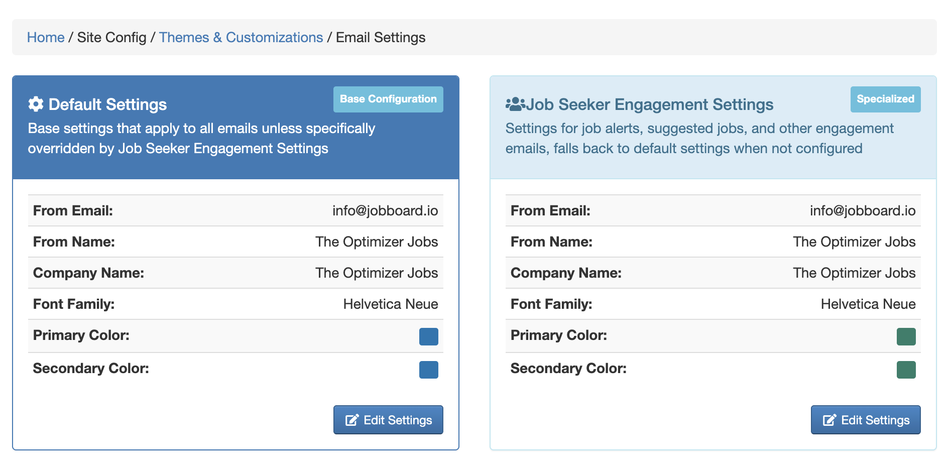 Your job board's emails are a critical part of the user experience, from transactional updates to valuable job alerts. With the new Email Settings page, you can fully brand and customize every email sent from your platform, ensuring professionalism and consistency for your users.